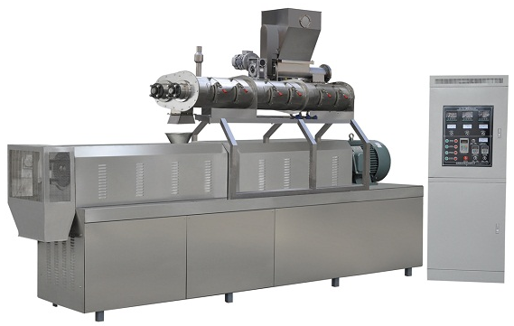 The double-screw extruder consists of feeding system, extruding system, cutting system, heating system, transmission system and controlling system. We will feed the material from the feeding machine and get the tissue state by inflating the material and the machine barrel must be high temperature, high pressure and high cutting. The material can be sterilized by the high temperature and high pressure and make the product safe.